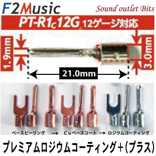 ネコポス可●F2MusicPT-R1c 12G professionalダイレクトロジウムコーティング12G(ゲージ)棒端子40個入(絶縁スリーブ赤・無色/ケース付)