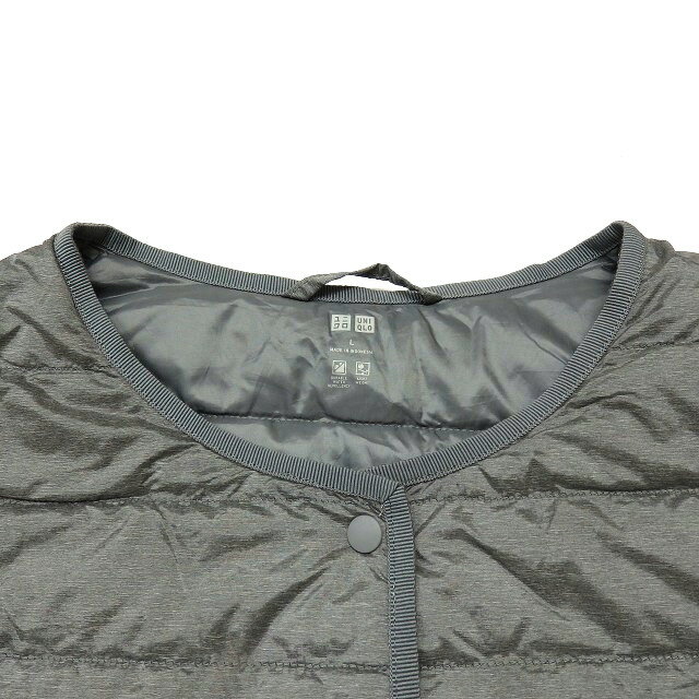状態ランクについてinformationブランドユニクロ UNIQLO表記サイズL実寸サイズ身幅:46cm 着丈:55cm 素材ナイロン65% ポリエステル35% ダウン90% フェザー10%色グレー ※照明や撮影環境により、実物と若干お色が違う場合がございます。